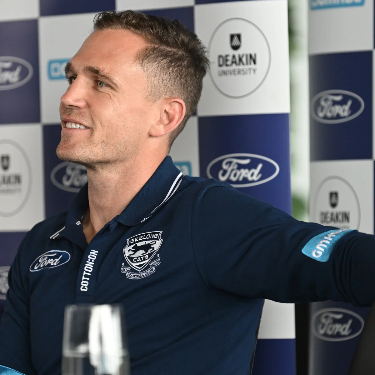 Selwood, widely regarded as one of Geelong’s greatest leaders of all time, arrived at GMHBA Stadium earlier today for a highly anticipated press event. With fans cheering from outside and media flooding the room, he confirmed the news personally.